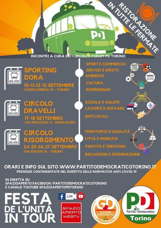 Ci sposteremo “a tappe” con il pulmino allestito per l’occasione, in ogni “fermata” affronteremo temi che riguardano da vicino la nostra Città e l’attualità. Avremo anche delle tappe “extra urbane” che stiamo definendo con gli altri circoli dell’area metropolitana. Tutti sono invitati a partecipare e ad esporre la propria opinione sul futuro della città, su come rendere più forte e incisivo il programma del Centrosinistra per tornare a governare Torino nel 2021", ha aggiunto Carretta, lanciando l'obiettivo da inseguire per l'anno prossimo.