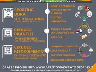 "La prima di queste fermate sarà da giovedì 10 a domenica 13 allo Sporting Dora di Corso Umbria 83, dove ci si confronterà, tutti i giorni alle 18 e alle 21, su Commercio, Turismo, Sport, Diritti, Ambiente, Cultura e Referendum", ha concluso Mimmo Carretta. "Ogni giorno sarà disponibile un servizio bar e un servizio ristorazione a cena".