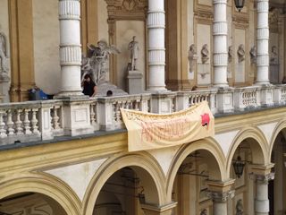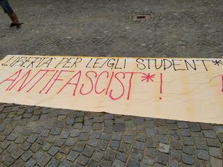 “Libertà per le/gli student* antifascist*”: è questo lo striscione appeso oggi pomeriggio, nel cortile del rettorato dell'Università di Torino, durante il presidio di protesta organizzato da diverse organizzazioni di studenti tra cui Collettivo Universitario Autonomo, Manituana, Studenti Indipendenti e Ujamaa.
