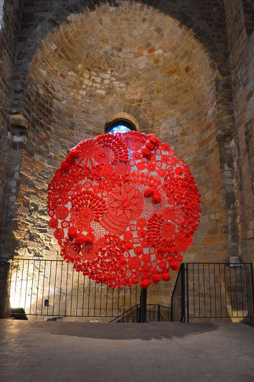 I nodi e gli intrecci sono all’origine dell’esistenza di Grazia Inserillo: l'artista, nata tra le reti da pesca e i ricami, con il filo indaga l'aspetto antropologico, il concetto di essere e di abitare dell'uomo. “Origine del mondo”, il grande arazzo rosso sovradimensionato, nasce dal sapiente uso dell’uncinetto, l'elemento circolare rappresenta contemporaneamente un sistema biologico cellulare e un macro-mondo ambientale: un magma, dalla forte connotazione cromatica, che racchiude nelle sue forme riflessioni e istanze legate alla posizione della donna nella società contemporanea, alla propria terra e alla matrice sociale in cui vive.