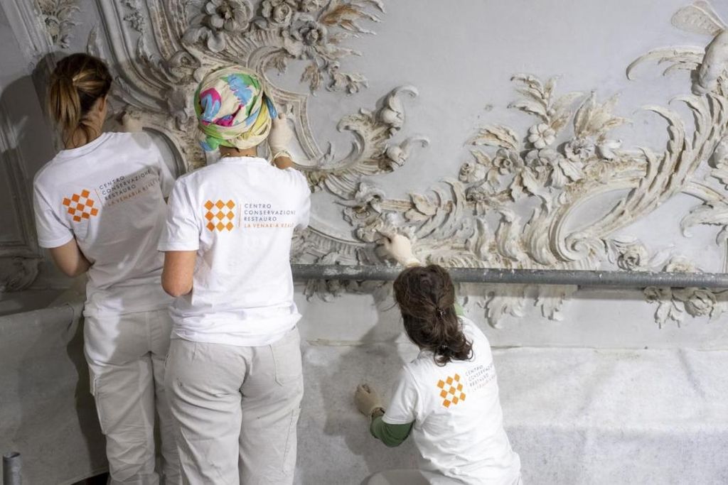 Ritrovato nel 2018 dai Carabinieri del Comando Tutela Patrimonio Culturale di Torino, il prezioso arredo è stato finora esposto alla Reggia di Venaria. Gli interventi nella Sala dell’Alcova sono stati promossi nell’ambito della convenzione triennale in corso tra il CCR e il Segretariato Regionale per il Piemonte che con fondi ministeriali ne ha finanziato il recupero tra il 2019 e il 2020.