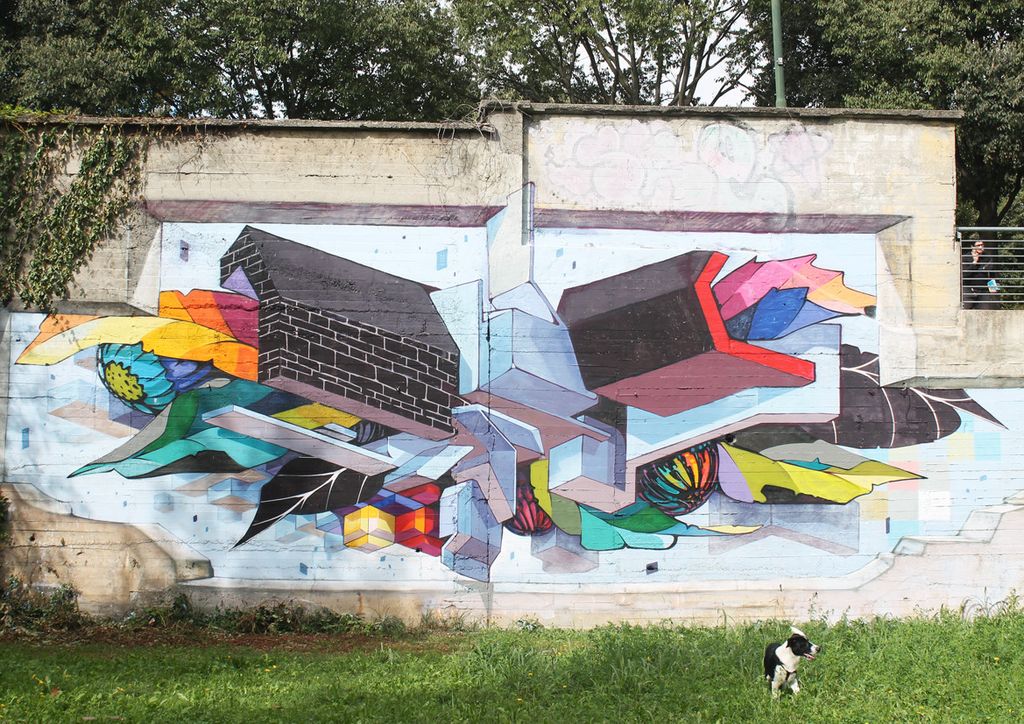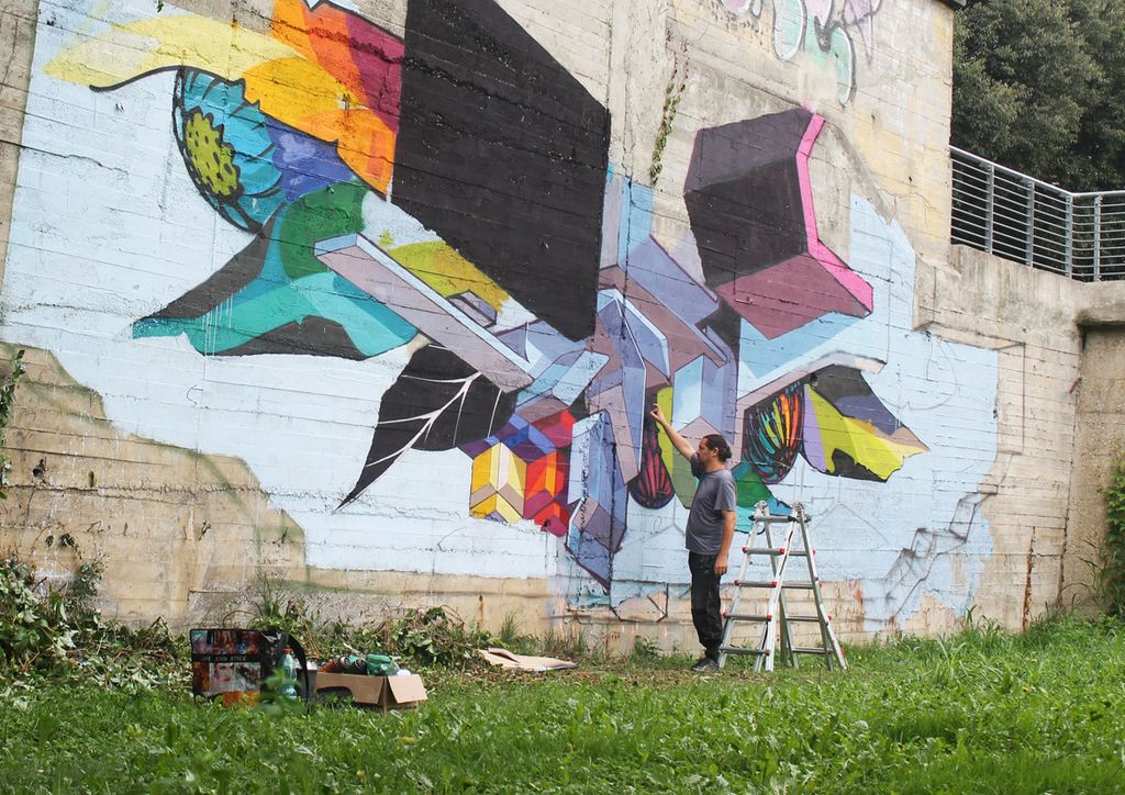 Lo street-artist ha decorato il muro davanti all'istituto di Via Pietro Thouar, nel quartiere Lucento: l'opera rappresenta una “finestra fantastica” per spargere positività dopo il lockdown