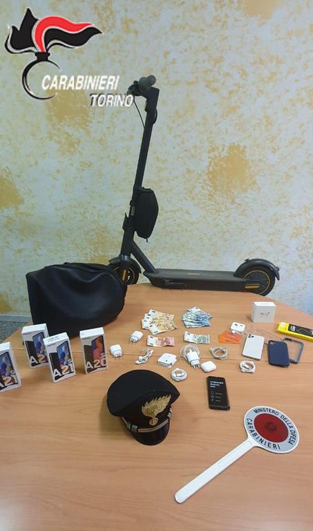 I carabinieri hanno trovato nel suo zaino anche 6 cellulari ancora confezionati dal valore di circa 2500 euro in tutto