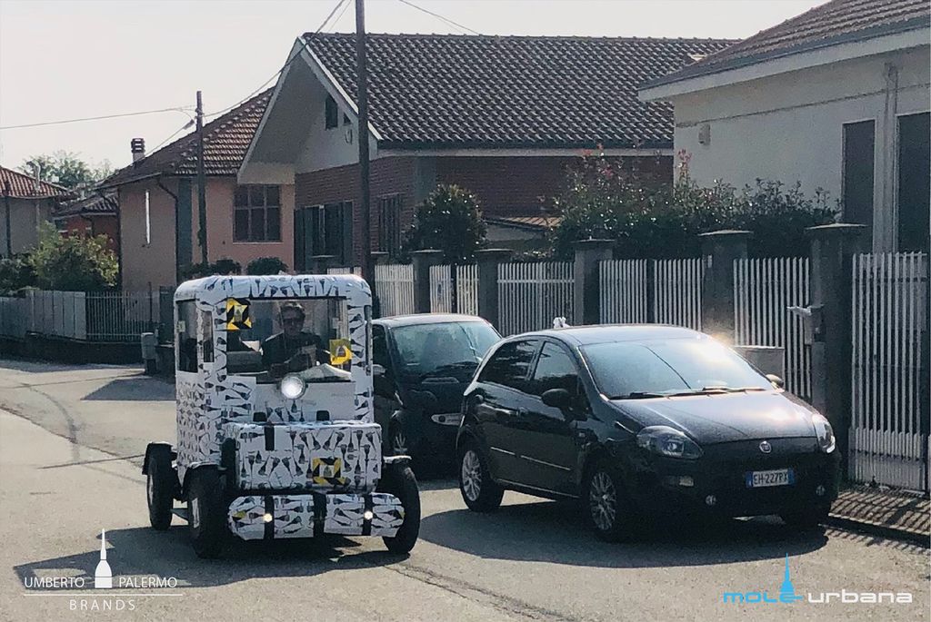 Si aggira per le vie di Torino, adeguatamente camuffata come si conviene in questi casi, per affrontare la sua prima prova "su strada". E' la Mole Urbana, la urban car griffata Umberto Palermo che lo scorso 2 luglio aveva fatto il proprio debutto negli spazi del Museo dell'automobile di Torino.