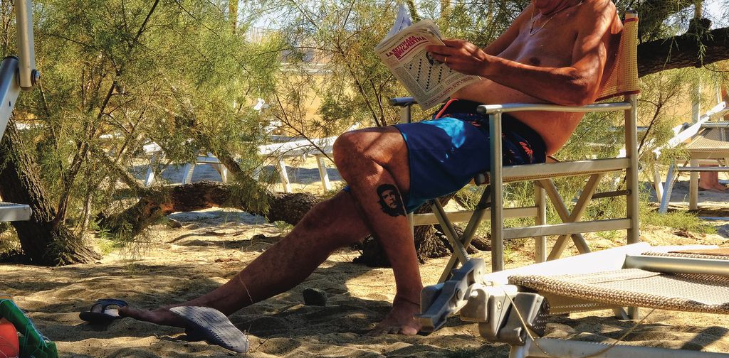 "Il manifesto di Bulgini riassume in qualche modo il racconto composto in questi mesi dagli altri artisti coinvolti e lo trasferisce su un altro piano - sostiene Christian Caliandro, curatore del progetto -. Un vecchio uomo che fa le parole crociate, seduto mollemente su una sdraio, in una pineta vicino Livorno l’estate scorsa. L’inquadratura dell’immagine lo priva della testa: lo decapita. Sulla gamba, esibisce un tatuaggio con Ernesto Che Guevara. Il titolo dell’opera è volutamente ambiguo: le lotte del passato, il sogno della rivoluzione, il volto del Che come simbolo di ribellione, sono ormai dimensioni relegate nel ricordo, come frullate insieme nella post-storia. Così, la condizione attuale non è tanto quella della resa ma piuttosto del riposo, della fine di tutte le battaglie che trascolorano nell’oblìo".