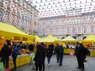 Ieri settemila consumatori torinesi hanno fatto acquisti al mercato di Campagna Amica, allestito da Coldiretti Torino, in piazza Palazzo di Città. Cinquanta agricoltori in vendita diretta, sotto i gazebo gialli, per tutta la giornata hanno proposto cibo stagionale e a chilometro zero: frutta e verdura, ma anche pasta, riso, uova, farina, pane, salumi, carne bovina, suina e avicunicola, formaggi, miele, birra e vino. In occasione delle festività di Ognissanti, presente un gazebo con fiori e crisantemi. Ospite del mercato contadino anche il pregiato marrone della Val Susa e produttori di dolci tipici piemontesi.