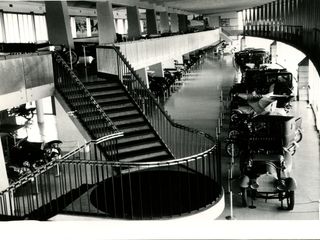 Alla sua apertura, nel 1960, si entrava nel Museo dall’ingresso principale di corso Unità d’Italia; si attraversava quindi il cortile interno abbellito al centro da un arioso giardino, sul quale si affacciavano i due magazzini, in cui trovavano posto vetture, telai e tutti i materiali non esposti nel percorso museale. Il cortile fungeva anche da parcheggio per i visitatori.