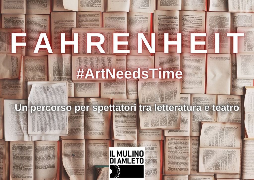 Proprio a quest’immagine si aggancia il progetto “Farheneit” della compagnia torinese Il Mulino di Amleto, percorso artistico per spettatori teatrali e interpreti, avviato nel mese di ottobre e diretto da Marco Lorenzi e Alba Maria Porto, con gli attori Roberta Calia, Yuri D’Agostino, Francesco Gargiulo, Barbara Mazzi, Raffaele Musella e Angelo Maria Tronca. Ancora in corso fino a dicembre, vede il sostegno del Bando Tap – Torino Arti Performative 2020 della Città di Torino, in collaborazione con Fertili Terreni Teatro e ACTI Teatri Indipendenti.