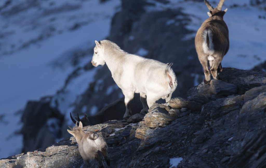 Giunti sul posto, gli agenti della Città Metropolitana e il professor Rosi hanno avvistato in un branco di Stambecchi un maestoso esemplare maschio adulto dal mantello bianco e senza corna. Il professor Rossi, dopo un’attenta osservazione, ha definito l’animale come leucista, ovvero affetto da leucismo (dal greco “leucos”, cioè bianco), un’anomalia genetica che a differenza dell'albinismo, lascia le pupille degli occhi pigmentate. Un mantello bianco rappresenta un grosso problema per gli animali selvatici, in quanto elimina il loro naturale mimetismo e rende tali animali più individuabili dai predatori ed espone anche il branco a rischi maggiori. Generalmente gli animali leucisti vengono allontanati dal gruppo, cosa che in questo caso non è avvenuta. Anzi, l’animale manifesta atteggiamenti da leader. La scoperta ha lasciato piacevolmente sorpresi gli esperti di fauna selvatica, in quanto è un fatto straordinario come un animale, cosi evidente, sia riuscito a passare inosservato per diversi anni.