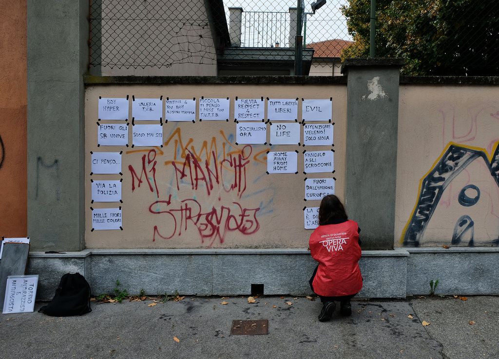 Tutti gli artisti hanno ascoltato e raccolto le storie e le voci delle comunità per poi agire empaticamente sul territorio, coinvolgendo gli abitanti, le associazioni che si occupano di dare risposte alle persone più fragili, le Università della Terza Età e tutti quegli attori che vivono attivamente i quartieri.