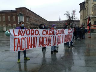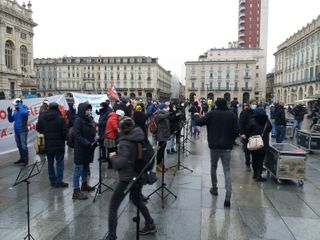 Il maltempo non ha bloccato la manifestazione indetta dal coordinamento dei Lavoratori dello spettacolo in Piemonte, oggi pomeriggio in piazza Castello, a Torino.