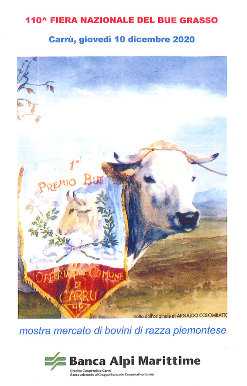 Giovedì 10 dicembre 2020, si svolgerà a Carrù, presso il foro boario in Piazza Mercato e in stretta modalità statica, la 110^ edizione della fiera nazionale del bue grasso, mostra mercato di bovini da macello di razza piemontese.