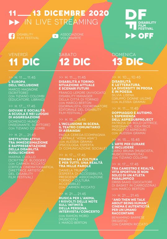 Le date sono comunque state conservate per organizzare il DFF OFF, anteprima in grado di fornire una panoramica su quella che sarà la prima edizione in programma in primavera. "L'idea di inserire la disabilità e il cinema in un contesto sociale e culturale più ampio va considerata proprio in questa direzione”, ha aggiunto Berton.