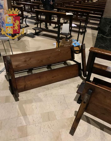Distrugge gli arredi della chiesa e minaccia i fedeli: arrestato un 58enne [VIDEO]