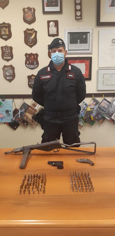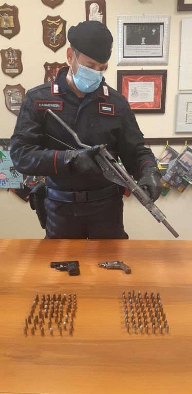 I carabinieri hanno sequestrato un mitra, due pistole e 117 munizioni varie