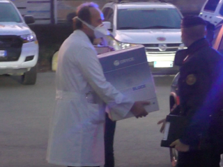 I militari hanno consegnato al professor Giovanni Di Perri, direttore del dipartimento di Malattie Infettive dell’Amedeo di Savoia e primo vaccinato in tutta la regione, le fiale con il vaccino. Il ritiro del pacco è avvenuto davanti a un tabellone con delle primule disegnate sopra, simbolo della campagna vaccinale.