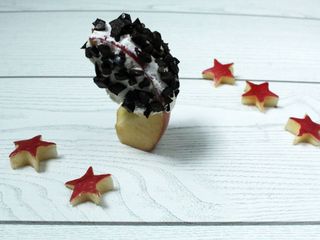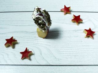 Ricoprite il 5° spicchio con: formaggio spalmabile e mandorle ridotte in granella