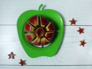 Lavate bene la mela mantenendo la buccia e, con l’aiuto di un tagliamela, dividetela in 8 spicchi