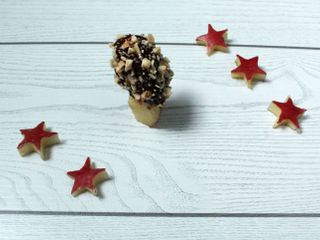 Ricoprite il 1° spicchio con: cioccolato fondente fuso e nocciole ridotte in granella
