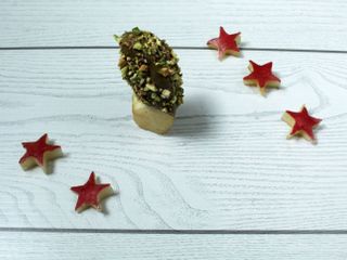 Ricoprite il 4° spicchio con: crema di pistacchio e pistacchi ridotti in granella