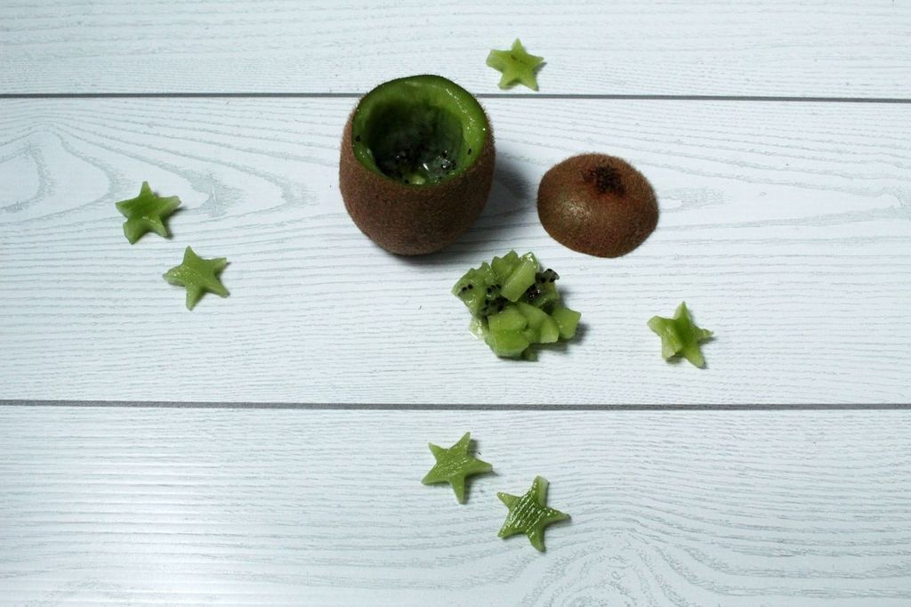 Tagliate la calotta del kiwi e scavatelo con l’ausilio di un cucchiaino, tenendo da parte la polpaFASE 2