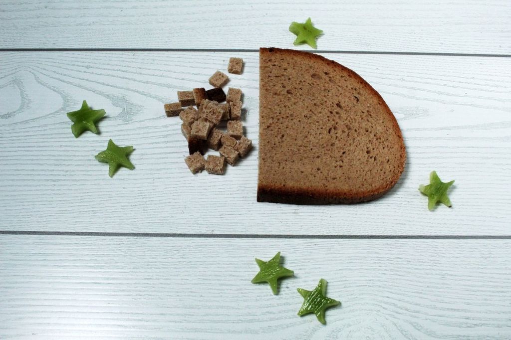 A parte, unite la polpa del kiwi alla crema di noci e ai tocchetti di pane