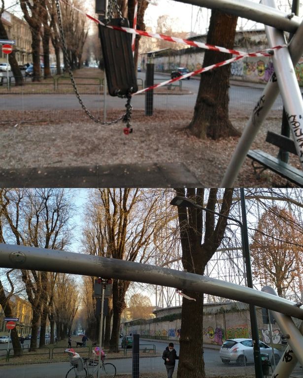 Giochi fuori uso e panchine rotte nell'area bimbi di corso Farini