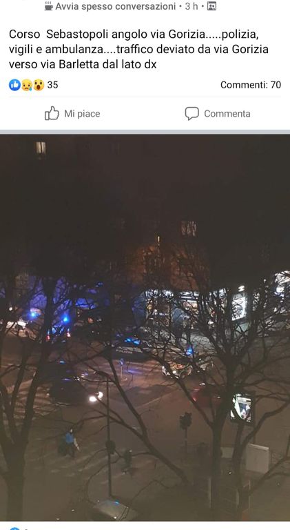 Uno dei post che vengono condivisi sui social, con l'immagine dell'arrivo delle forze dell'ordine dopo l'incidente