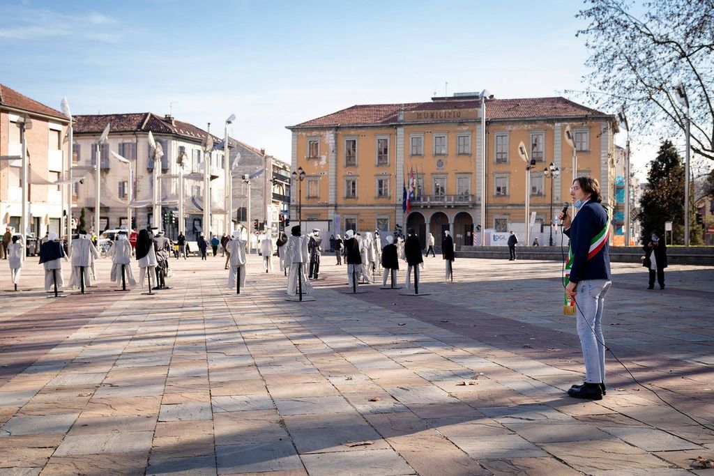 "Come ogni anno avremmo voluto una giornata della memoria all'insegna della partecipazione e della restituzione, che da sempre abbiamo promosso attraverso le scuole e le associazioni del territorio, ma il Covid non ce lo ha permesso", ha detto il sindaco Tolardo, commemorando il Giorno della Memoria in una piazza Di Vittorio piena di manichini raffiguranti nazisti e deportati, immagine di fortissimo impatto per provare a spiegare cosa erano i lager. "Questo però non ci impedisce di ricordare che oggi la nostra sfida più importante è promuovere la Memoria della Shoah nella generazione dei giovani".