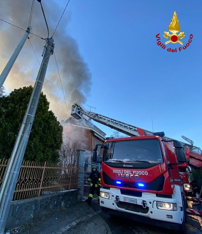 I Vigili del Fuoco del comando di Torino stanno intervenendo a Rosta per l'incendio di una casa.
