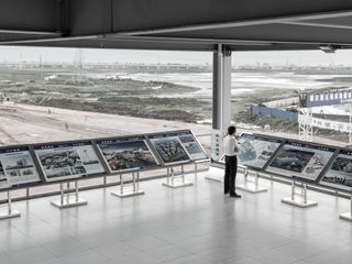 Il percorso della mostra si snoda lungo due sequenze logiche: la prima prende il via dalla ricostruzione di una exhibition hall, luogo iconico tipico delle new town cinesi, in cui le amministrazioni pubbliche e le imprese di costruzioni mettono in scena la città per promuoverne lo stile di vita e i successi raggiunti, e arriva all’urbanizzazione globale. La seconda sequenza si muove partendo da spazi vuoti e atoni per arrivare alle persone, ai singoli individui ripresi nelle loro attività quotidiane o in ritratti “situati” dentro i nuovi insediamenti. Le due sequenze si intrecciano continuamente, smontando via via il rassicurante concetto di “eccezionalità” cinese: ciò che da lontano e a uno sguardo superficiale appare esotico e distante, si rivela molto più familiare di quanto crediamo. Le nuove urbanizzazioni cinesi non appaiono più come “altro da noi”: nelle new town della Cina contemporanea la vita quotidiana è fatta degli stessi piccoli gesti di cui è fatta la vita a ogni latitudine e le persone che li compiono non sono diverse da noi nei comportamenti, nelle pratiche, nei desideri.