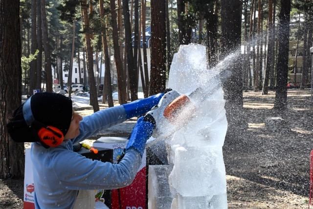 Interessante vedere all’opera gli scultori, le varie fasi della lavorazione, gli utensili utilizzati e le varie tecniche adottate per modellare i blocchi di ghiaccio, sino a trasformarli in originali opere rese ancor più suggestive dalle varie illuminazioni serali e notturne che sono molto piaciute ai molti passanti, ed in particolare ai più giovani che hanno rivolto molte domande agli scultori.