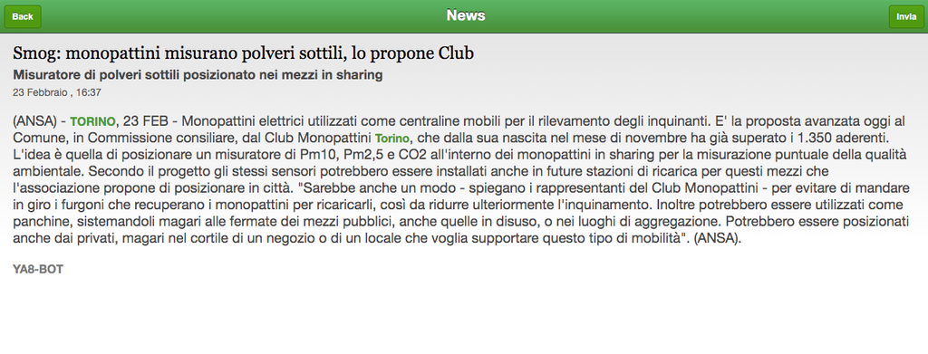 Centinaia di centraline mobili sui monopattini per misurare il livello di smog a Torino e box di ricarica con rilevatori. E’ questa la doppia proposta avanzata dal Club Monopattini di Torino, capace in pochi mesi di superare quota 1.350 membri, alla Città.