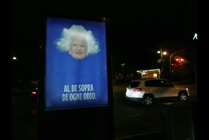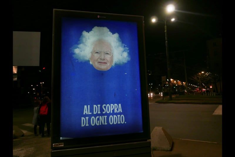 Il viso di Liliana Segre, nel cielo blu, con una nuova al posto dei capelli bianchi e sotto la scritta “Al di sopra di ogni odio”. Prende di mira nuovamente il cyberbullismo la nuova opera di Andrea Villa. I poster del Banksy torinese sono apparsi nelle scorse notti in corso Vittorio Emanuele 26, corso Moncalieri 33 e corso Cairoli.