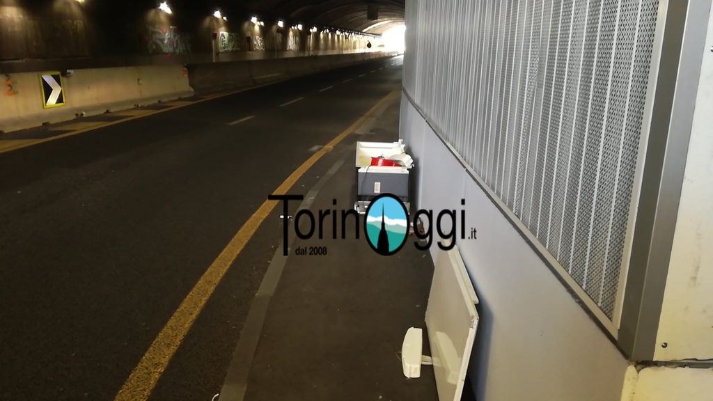 Torino, il degrado e la maleducazione si infilano nel tunnel: un frigo abbandonato alla rotonda della Regione