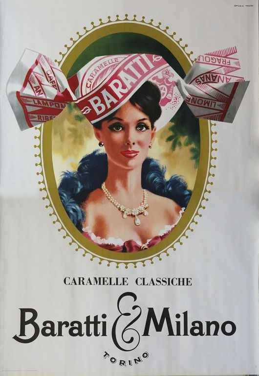 fino ad arrivare alle realizzazioni dello studio di Armando Testa per Cinzano, il digestivo Antonetto o le caramelle di Baratti & Milano.