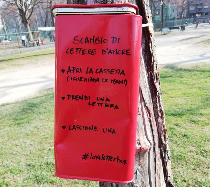 In un Piemonte diviso tra zone arancione scuro e rosse, a Torino si pensa anche all'amore. Al parco della Tesoriera, fissata a uno dei tanti alberi presenti, è infatti comparsa una cassetta speciale dove potersi scambiare lettere sentimentali: “Apri la cassetta (igienizza le mani), prendi una lettera e lasciane una” si legge sulle scritte realizzate in pennarello indelebile sulla latta rossa.