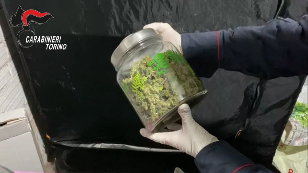 Operazione dei carabinieri nel quartiere delle Vallette. Sequestrati 15 piante e diversi barattoli pieni di droga per un peso totale di 1.100 grammi