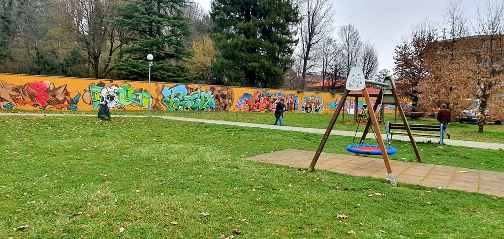 Alcuni esemplari arborei sono infatti di particolare pregio: una Sequoia della California, una Magnolia grandiflora e un Cipresso calvo, gli ultimi due inseriti nell’Elenco regionale degli alberi monumentali per la loro età e dimensioni. In questi anni il muro è diventato una palestra per tanti giovani writers: si è trasformato in una tela a cielo aperto colorandosi di illustrazioni e graffiti, che sono stati tutti fotografati in modo da poterne tenere memoria. L’amministrazione si sta attivando per mettere a disposizione nuovi spazi da destinare a sempre nuove espressioni di street art. L'abbattimento del muro comporterà anche altri interventi, a iniziare dalla realizzazione di un tratto di percorso pedonale con panchine e di un impianto di illuminazione pubblica con nuovi pali e corpi illuminanti a LED. Inoltre, saranno realizzate una siepe e una recinzione in rete metallica per circoscrivere il corso della bealera comunale, che scorre per un buon tratto nel “Parco basso”.