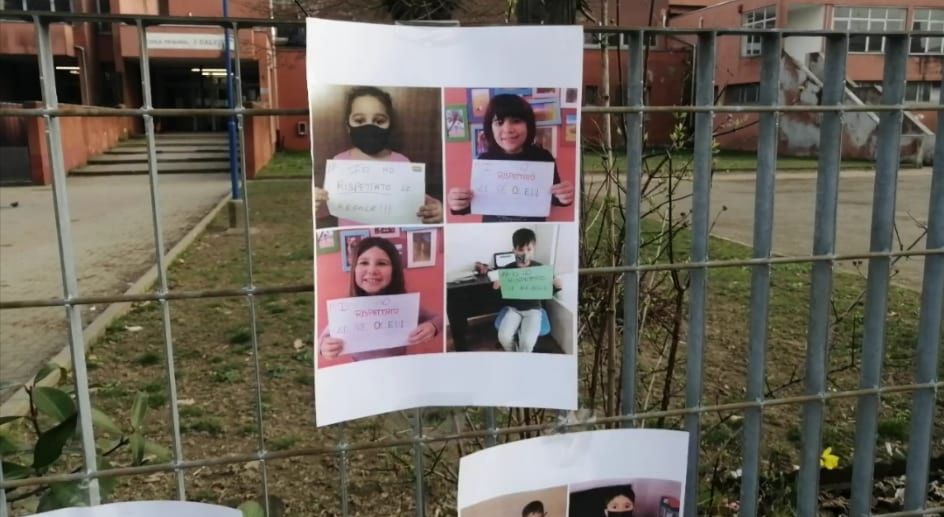 "Con questa protesta vogliamo dire che la chiusura totale della scuola non può essere la panacea di tutti i problemi", ha spiegato Diego Fasciana, che ha affisso all'esterno della scuola le foto dei figli, imitato da altri genitori: "loro hanno rispettato le regole come le ha rispettate la scuola ottemperando a tutti i protocolli e mettendo in atto entrate e uscite scaglionate, distanziamenti e monitoraggio della temperatura, per questo è uno degli spazi al momento più sicuri perché controllati".