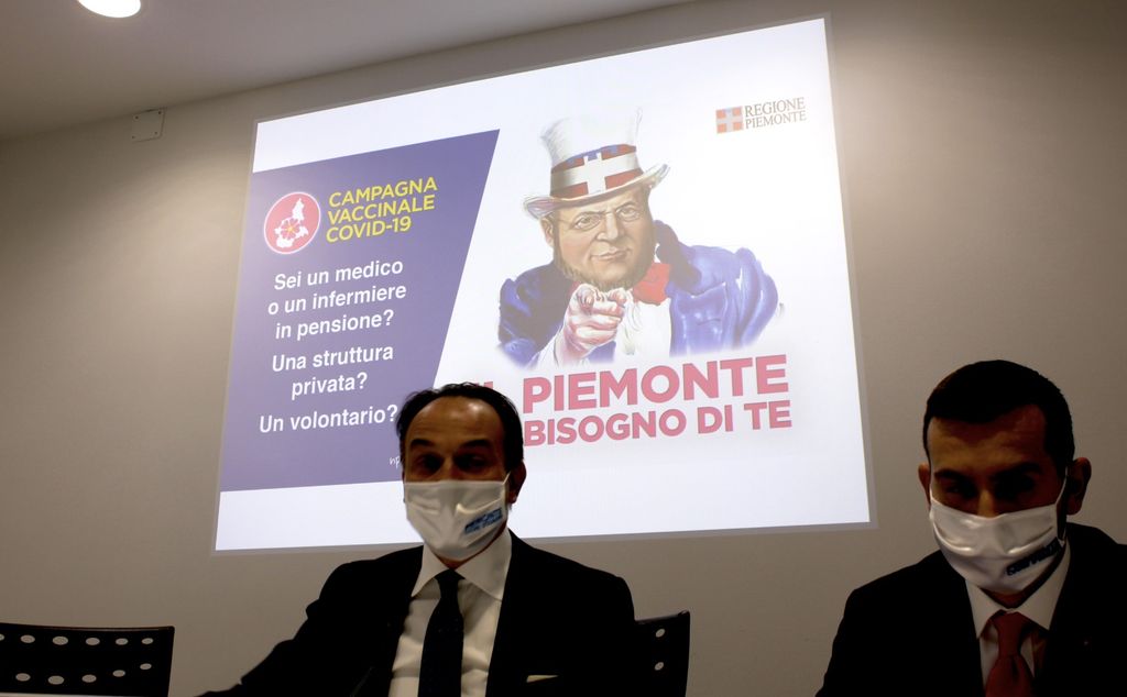 Il Piemonte prova ad accelerare sui vaccini. Dopo lo stop di AstraZeneca, costato circa 25mila dosi rimaste “in arretrato”, la Regione lancia una campagna per recuperare il terreno perso riprendendo lo slogan dello Zio Sam “Il Piemonte ha bisogno di te”, rivolgendolo a medici, infermieri e volontari.