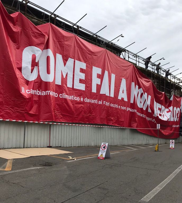 A Chieri un mega-cartellone di 30 metri lancia l’allarme sull’emergenza climatica