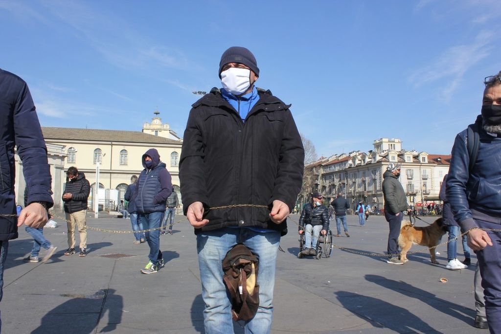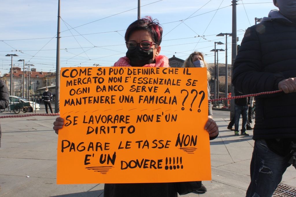 Lacrime e urla, la disperazione degli ambulanti incatenati a Porta Palazzo: “Fateci lavorare” [VIDEO e FOTO]
