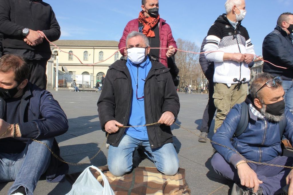 Urla, grida di rabbia e sconforto. “Se va avanti così duriamo una settimana, è un dramma” affermano gli ambulanti incatenati in piazza della Repubblica