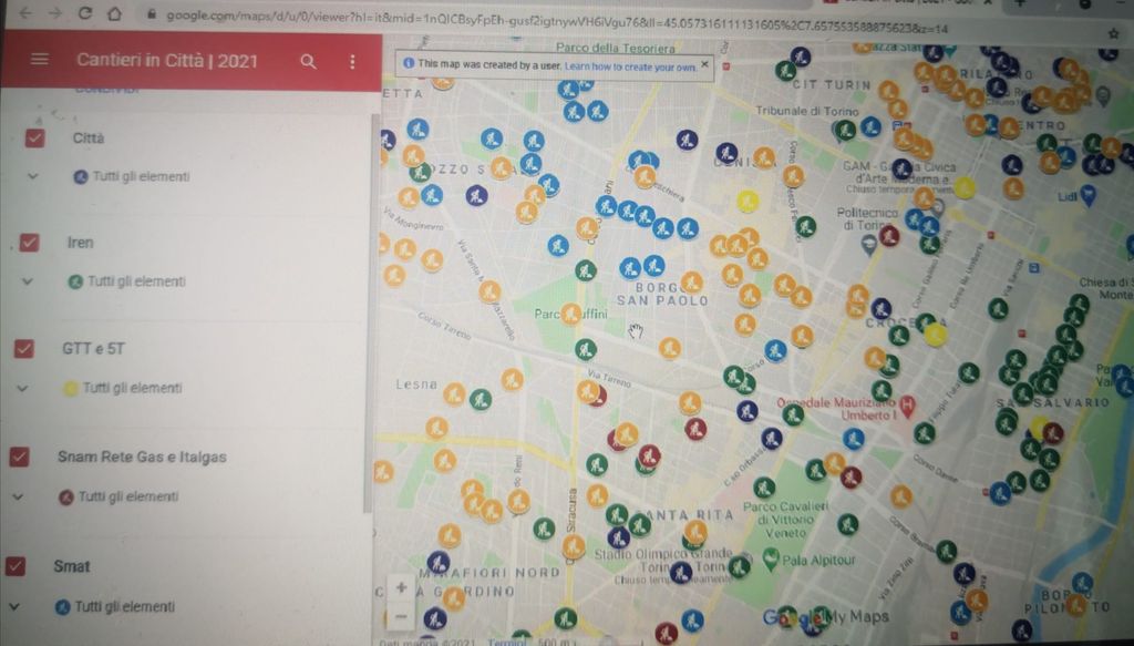 Saranno quasi mille i cantieri – tra rifacimento dell’asfalto e dei marciapiedi, posa di binari, sostituzione delle tubature dell’acquedotto e lavori sulla rete elettrica – che verranno attivati da qui all’autunno a 2021 a Torino. E per aiutare i cittadini a sapere in anticipo quando partiranno i lavori, che impatto temporale e di cambio viabilità avranno sulla propria zona, il Comune ha deciso di segnalarli tutti sulla pagina di google maps Cantieri in Città 2021 (https://www.google.com/maps/d/u/0/viewer?hl=it&mid=1nQICBsyFpEh-gusf2igtnywVH6iVgu76&ll=45.07010426803402%2C7.681904435000013&z=12).