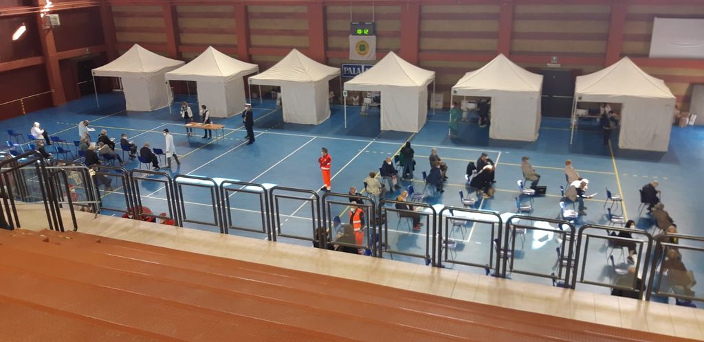 La struttura del Palalancia è stata affidata al Servizio Sanitario che ha previsto di effettuare in questa sede, oggi e la domenica di Pasqua, circa 500 vaccinazioni, al giorno.