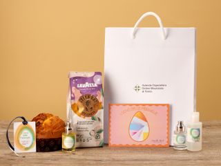 - un Uovo delle Meraviglie, lievitato artigianale di 250 g firmato Meraviglia d’Impasta; un Ovetto Kinder della Ferrero; una confezione di Caffè Wellness della Lavazza; l'essenza Profumo di Bene in flacone spray da 15 ml; un gel per le mani Profumo di Bene da 15 ml; una Food Fragrance Arance e Limoni di Sorrento by Antonella Bondi da 15 ml.