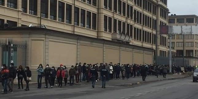 Lingotto, lunga fila ordinata di peruviani per poter votare alle elezioni del paese sudamericano