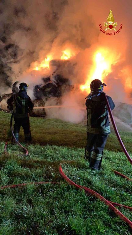 Incendio in una cascina di Villardora: in fiamme 100 rotoballe di fieno [FOTO]