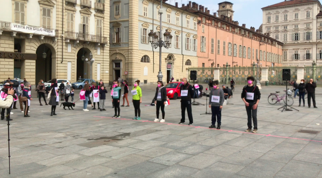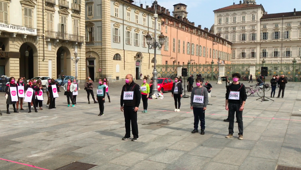 Il Giusto Mezzo scende in piazza a Torino e simulando una corsa tra uomini e donne, ricca di ostacoli solo per il sesso femminile, si iscrive alla "partita" per i fondi del Recovery Fund. Nell'ultimo miglio di una battaglia che va avanti da tempo, in piazza Castello decine di attiviste e attivisti hanno manifestato per chiedere al primo ministro Mario Draghi che parte dei fondi europei vengano utilizzati per aumentare l’occupazione femminile e combattere la disparità di genere.